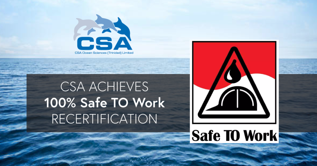 CSA Trinidad, a wholly owned local subsidiary of CSA Ocean Sciences (CSA), is happy to announce that it successfully achieved full Safe TO Work (STOW) recertification, achieving a score of 100% from the STOW Implementation Board, Energy Chamber Trinidad and Tobago (ECTT).